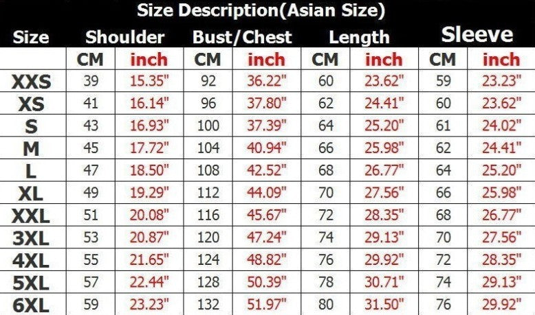 Size: XXS,XS,S,M,L,XL,XXL, XXL,XXXXL