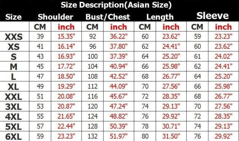 Size: XXS,XS,S,M,L,XL,XXL, XXL,XXXXL