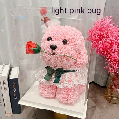 Specifications: white puppy with flowers and red bow tie apron with gift box colored lights, white puppy with flowers and green bow tie apron with gift box colored lights, light pink puppy with flowers and green bow tie gift box colored lights apron, brown puppy with flower and red necktie gift box colorful light knot apron