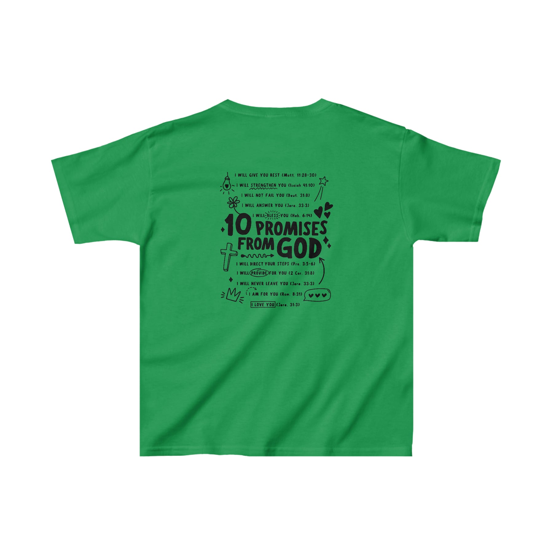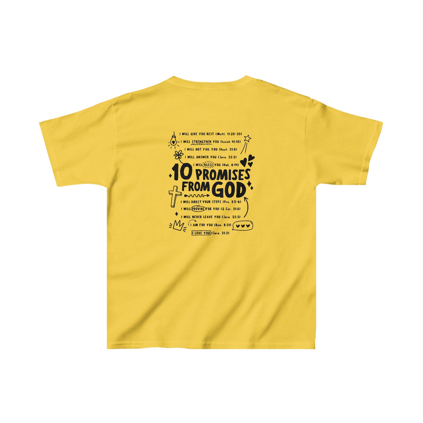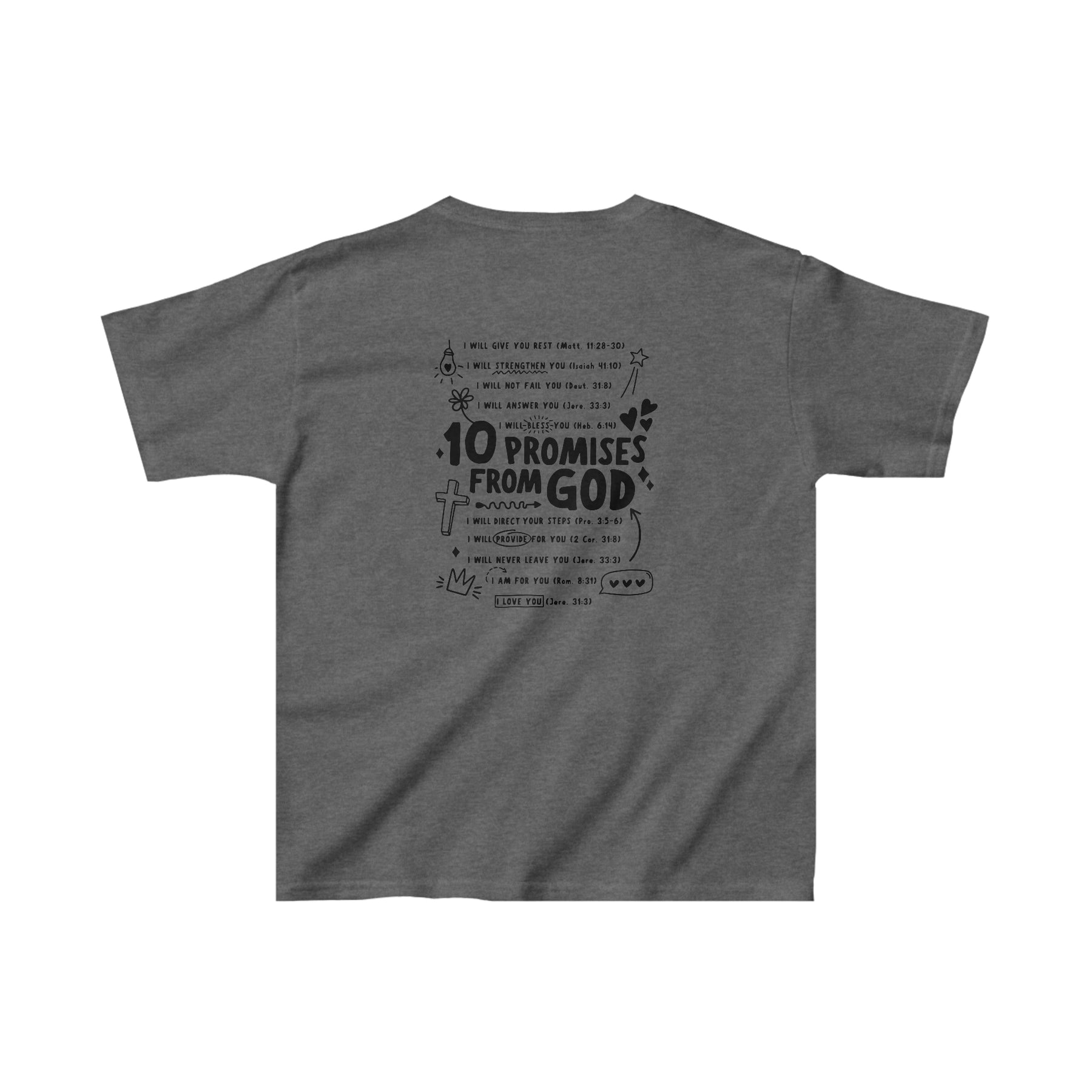 The kids heavy cotton tee is perfect for everyday use. The fabric is 100% cotton for solid colors. Polyester is included for heather-color variants. These fabrics are prime materials for printing. The shoulders have twill tape for improved durability. The collar is curl resistant due to ribbed knitting. There are no seams along the sides.