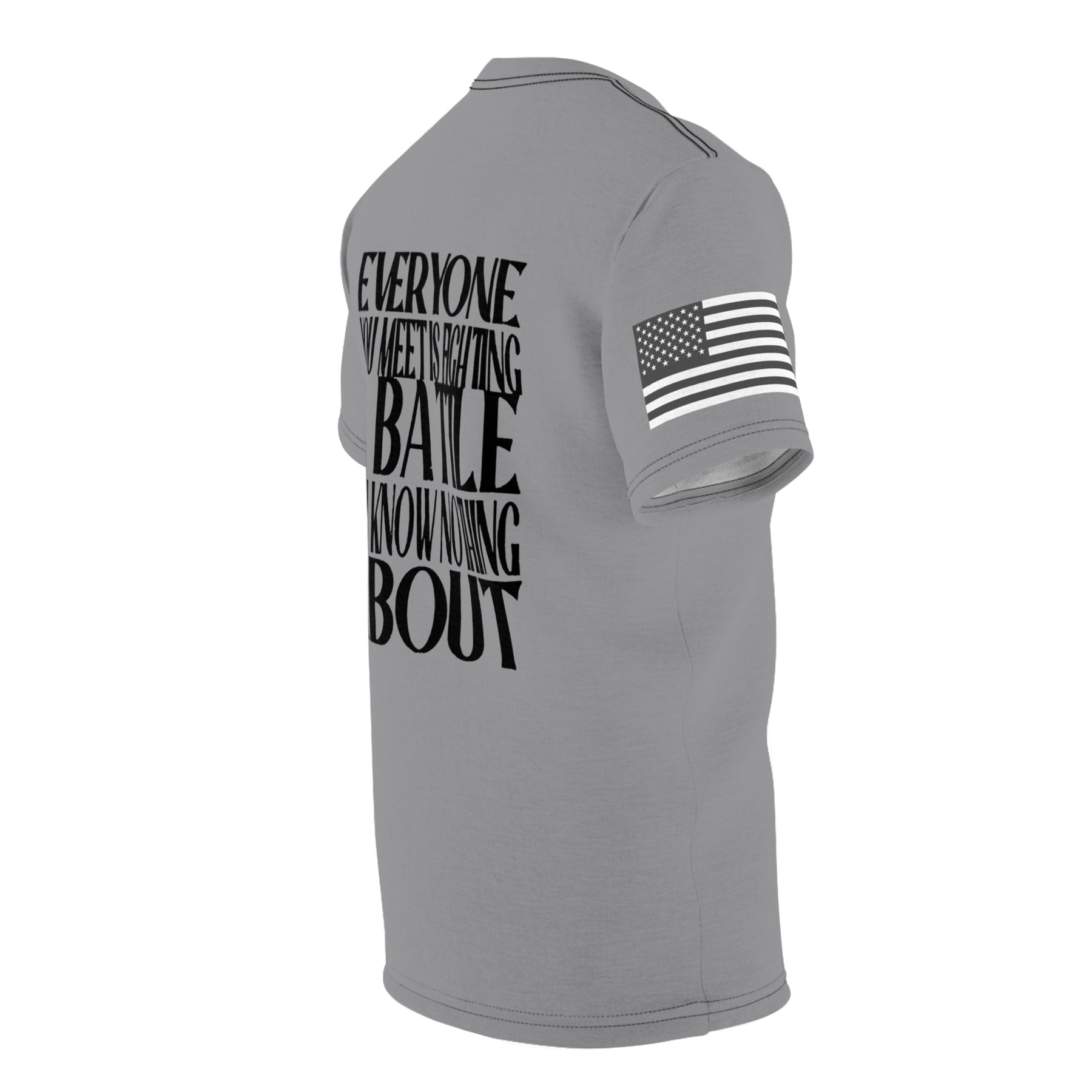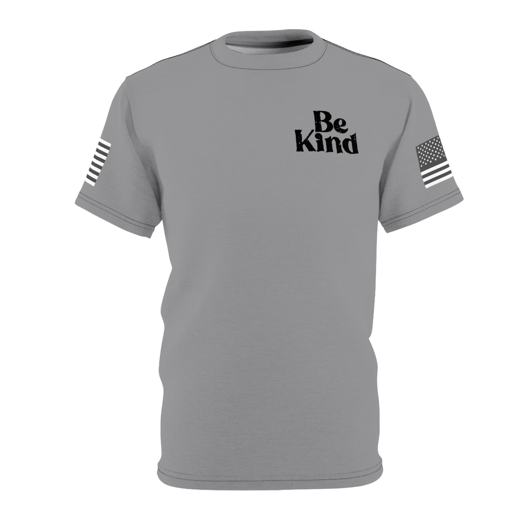 BE KIND -GREY-BLACK SEAM-Unisex Cut & Sew Tee (AOP)