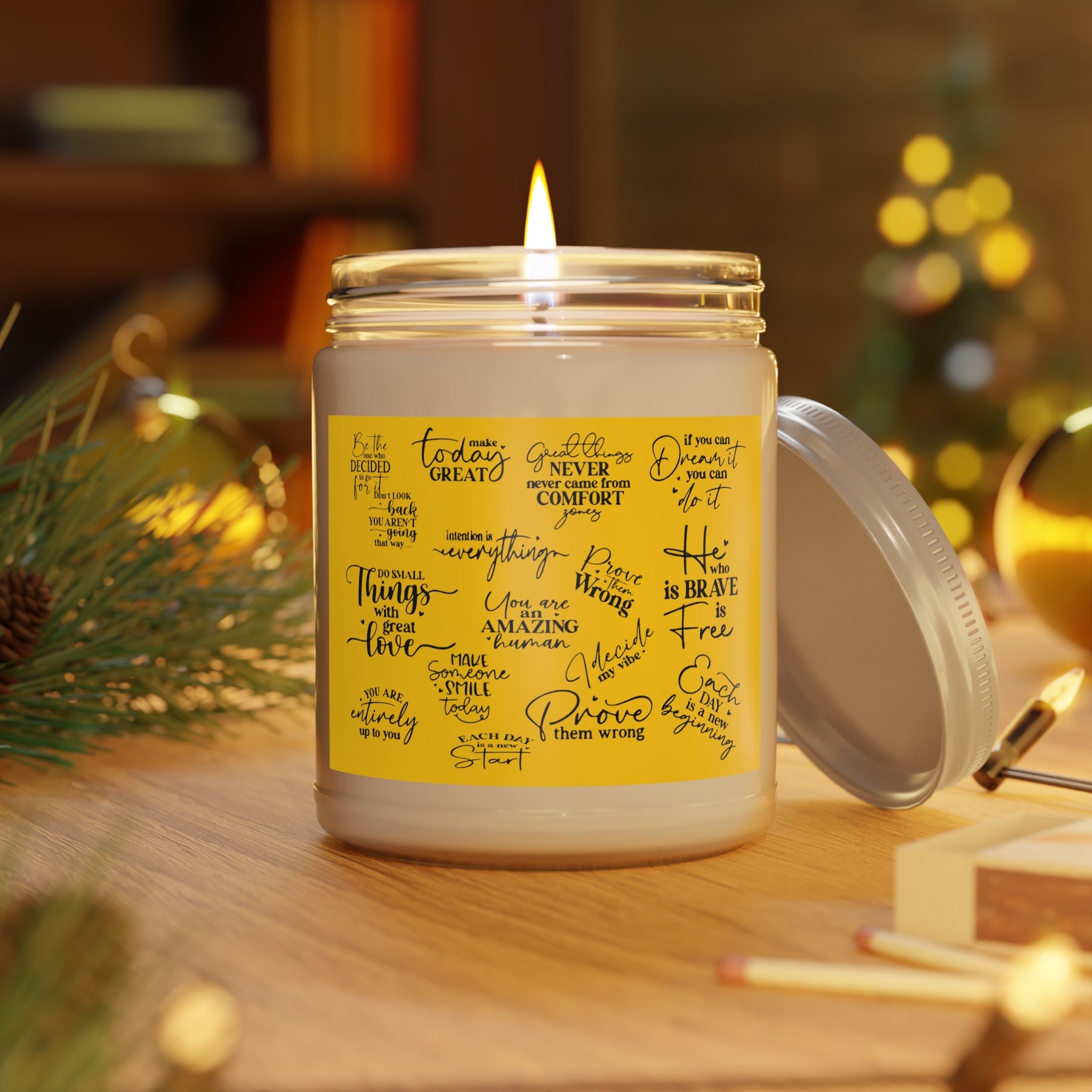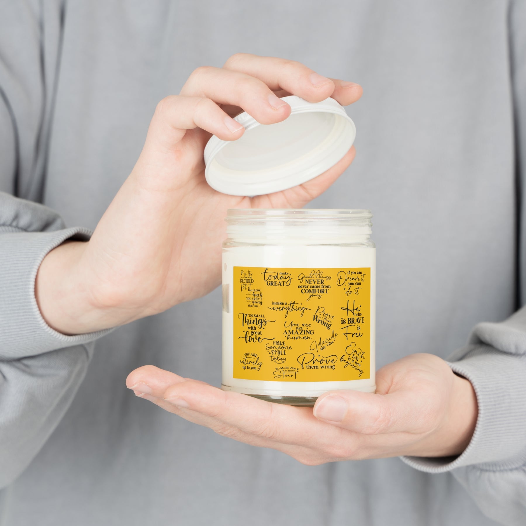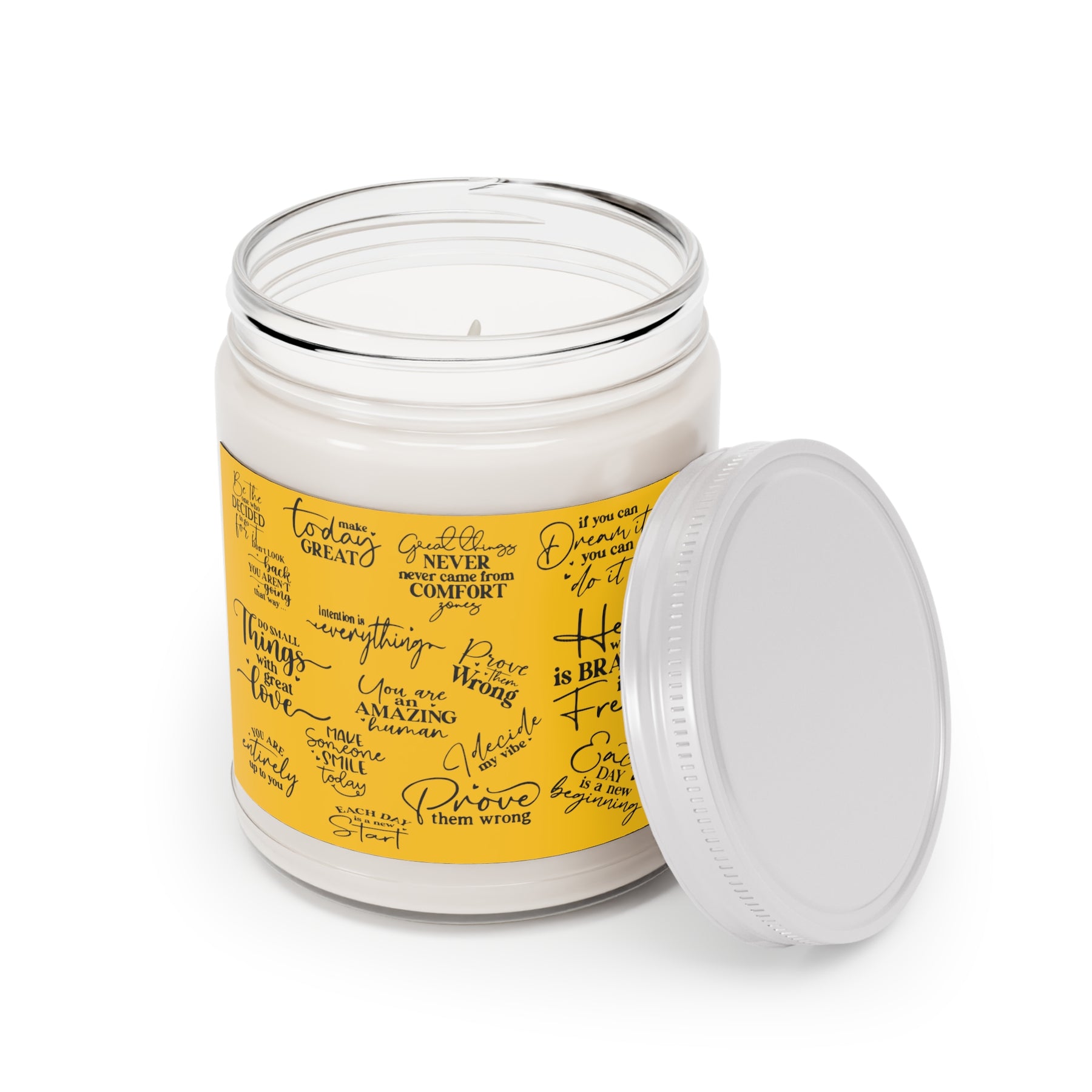 Nothing quite like an aromatherapy session that relaxes and inspires you. This custom candle jar can accommodate all your ideas, artwork, or inspirational quotes on its custom candle label. The candle itself is made 100% with a natural soy wax blend and cotton wick. Choose between ambrosial fragrances such as Vanilla Bean, Comfort Spice, and Sea Breeze.